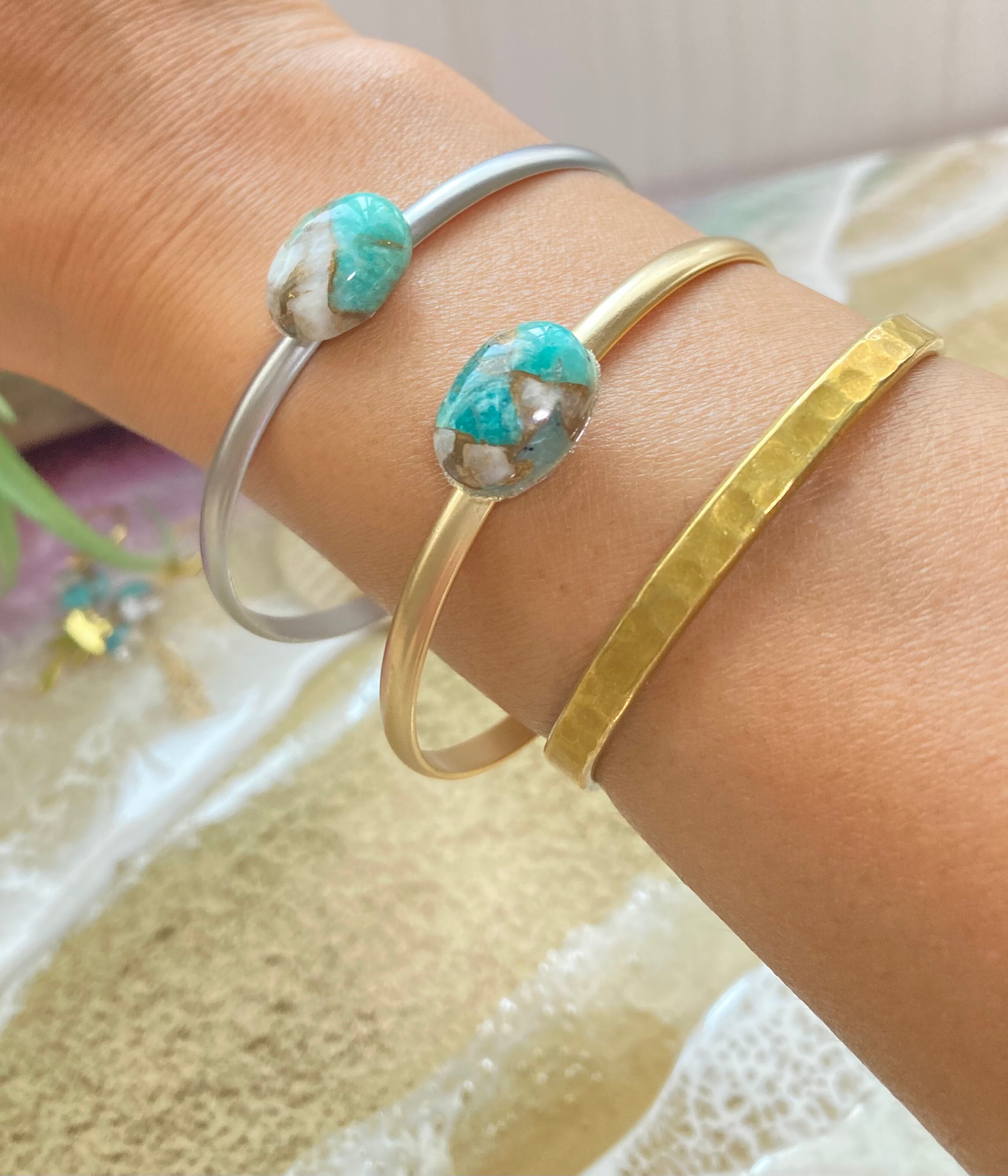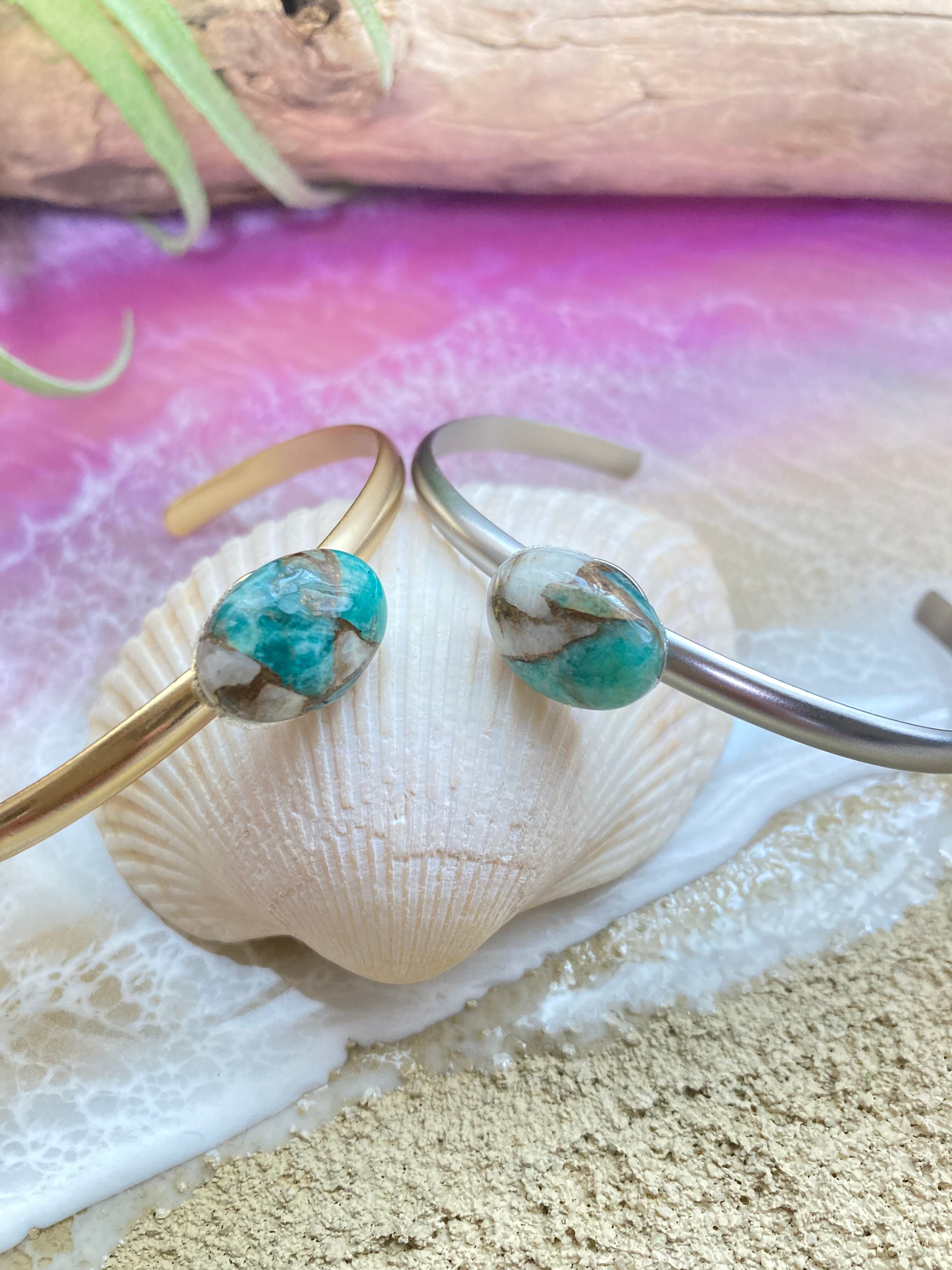 夏カラー天然石のバングルブレスレットです。